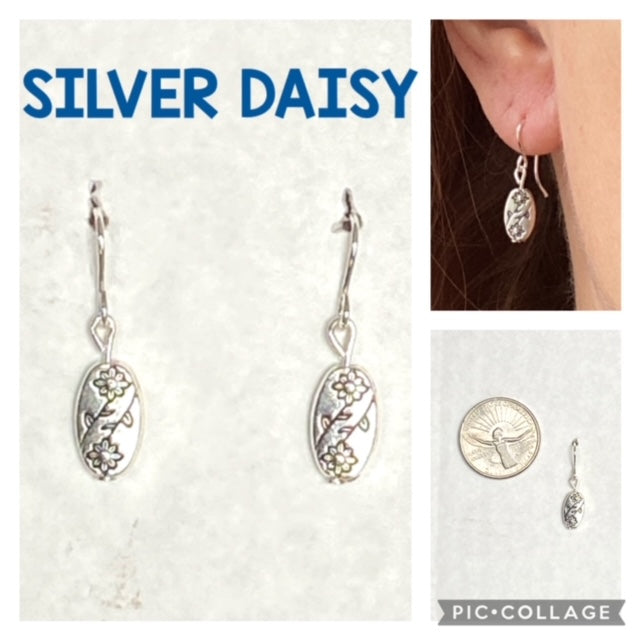 Sterling silver components pairs with a silver-plated bead adorned with daisy print.